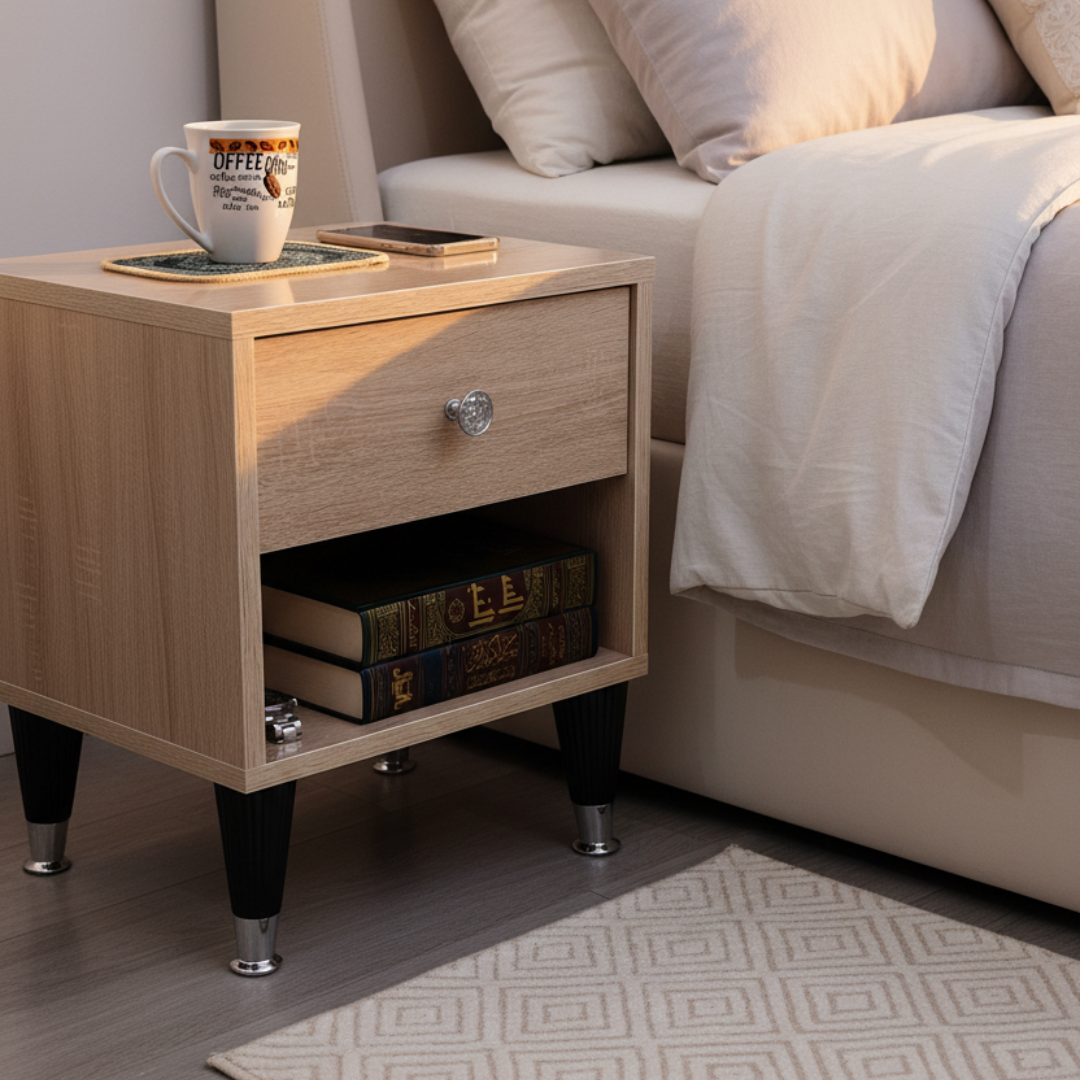 توفّر مكانًا مخصصًا لأغراضك اليومية مثل الهاتف، المصباح أو الكتاب، مما يقلّل الفوضى
